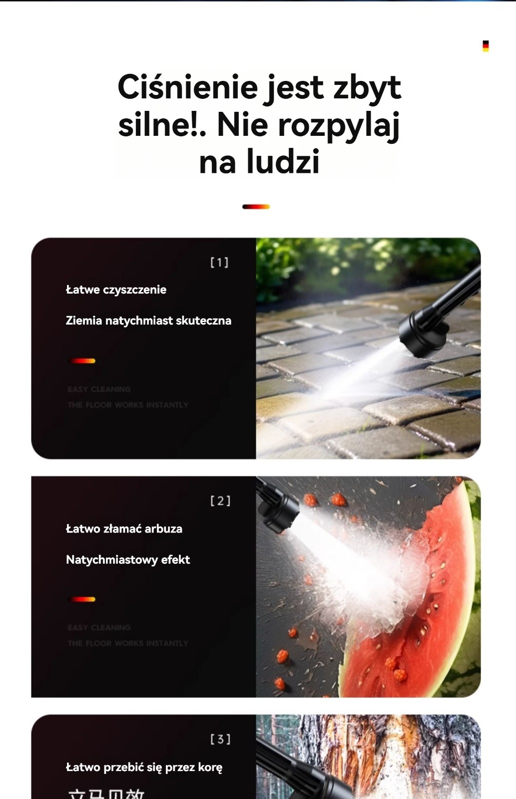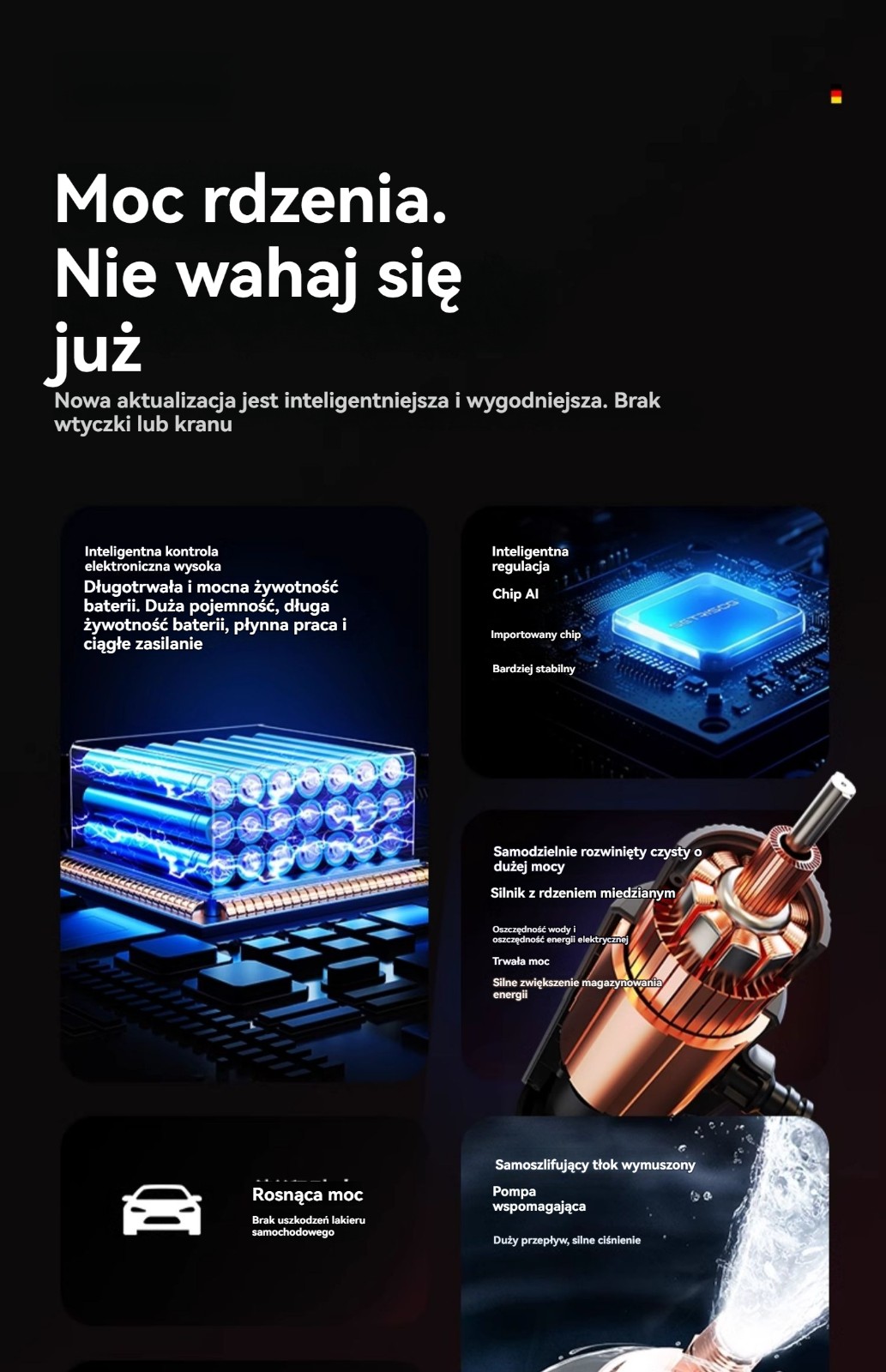 Wysokociśnieniowa myjnia samochodowa o dużej mocy wody ułatwia usuwanie plam